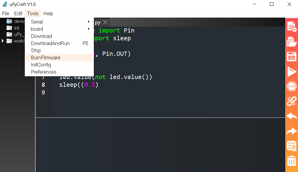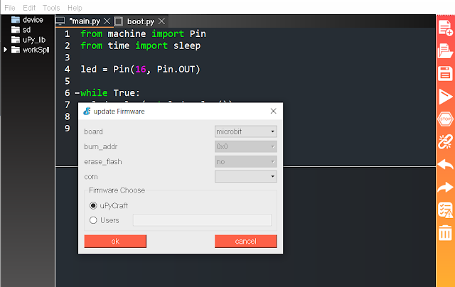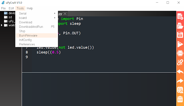 - Double-click that file. A new window opens with the uPyCraft IDE software.