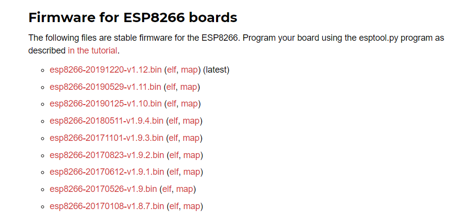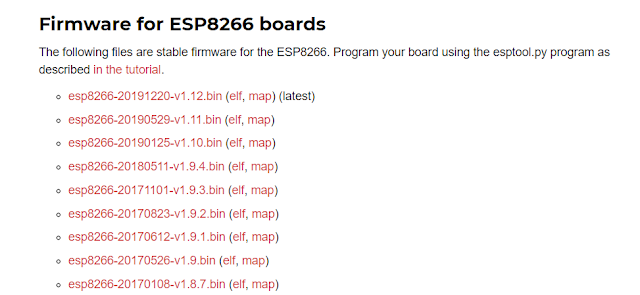 To download the latest version of MicroPython firmware for the ESP8266, go to the latest MicroPython download page and scroll all the way down to the ESP8266 section