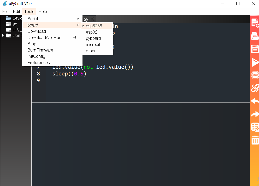 - Double-click that file. A new window opens with the uPyCraft IDE software.
